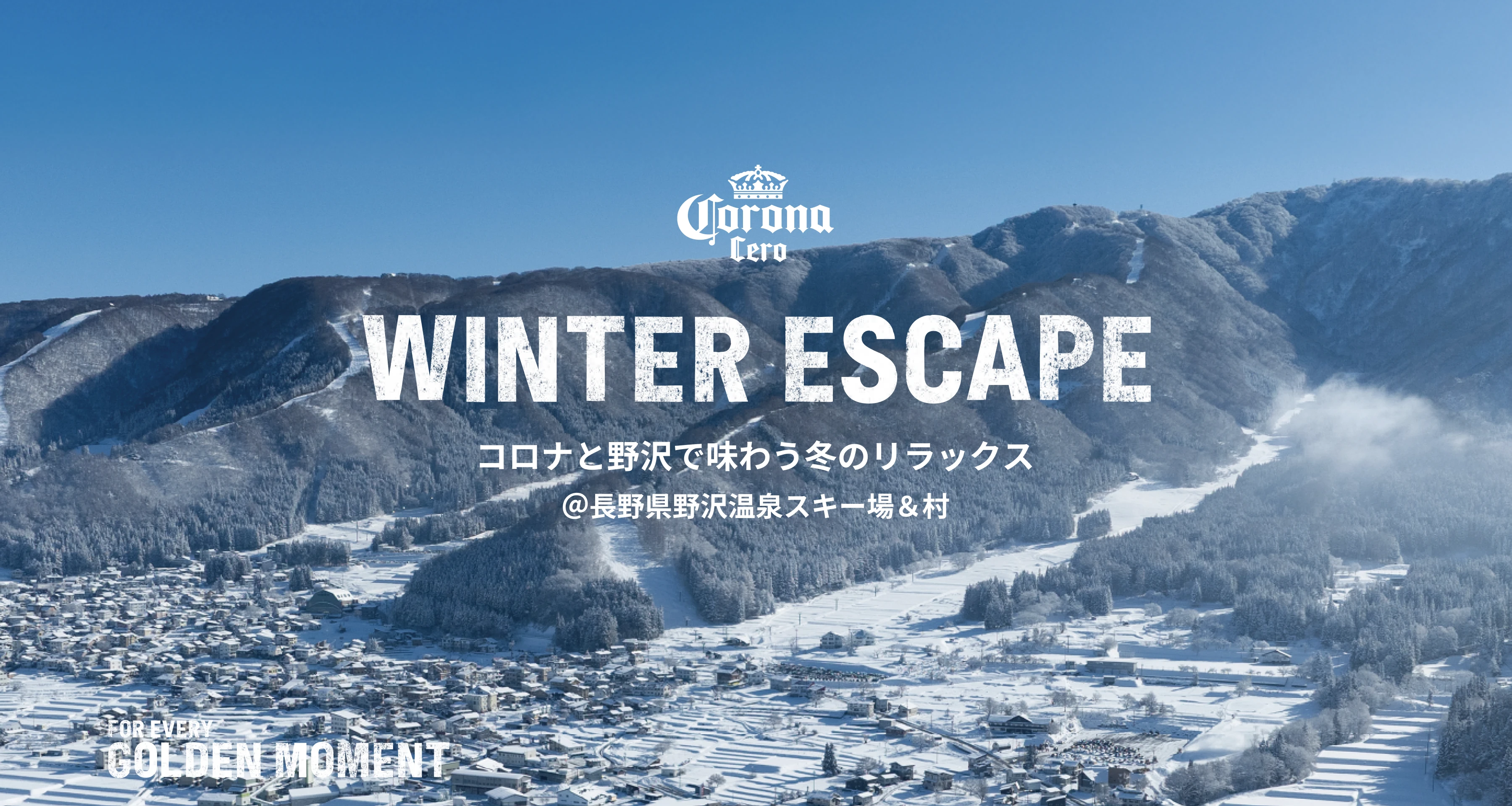 この冬、コロナビールは、スキー場から温泉街まで、エスケープやリラックス体験を提供します。野沢温泉村が持つ魅力と